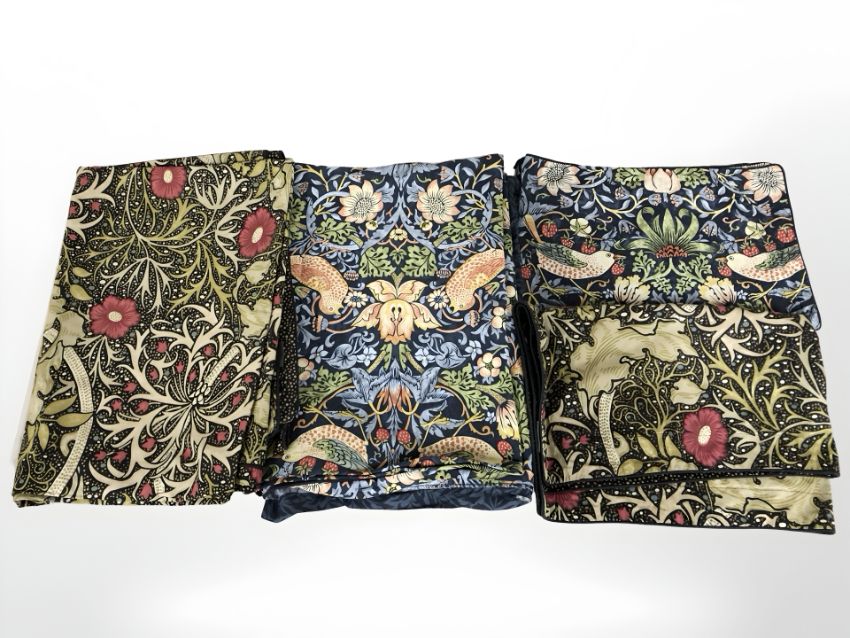 A group of Morris & Co. bedding and pillow cases.