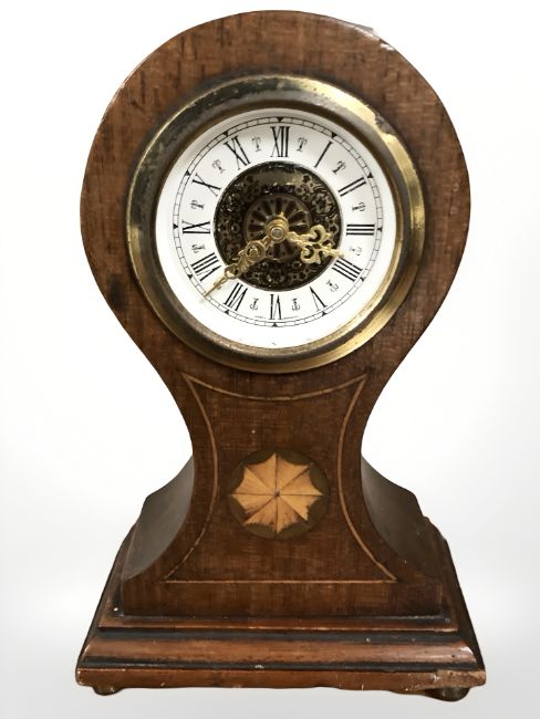 An inlaid mahogany balloon mantel clock, height 17 cm.