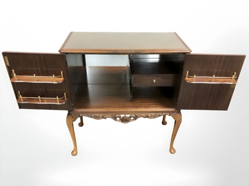 A 20th century walnut double door cocktail cabinet, width 89 cm.