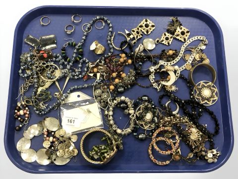 A group of costume jewellery, rings, necklaces etc.