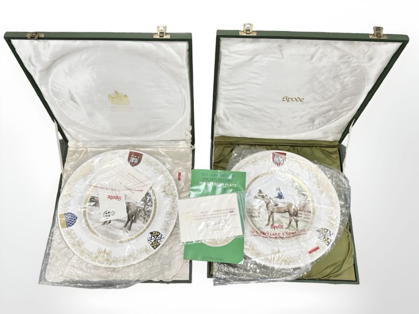 Two Spode plates depicting The Superhorse Nijinsky and the St. Ledger winner Athens Wood (limited edition). (2)