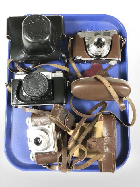 A Zenit-B camera, Kodak Retinette IA camera and an Agfa camera