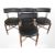 A G Plan teak extending circular dining room table, diameter 122 cm (closed), together with four matching black vinyl upholstered dining room chairs.