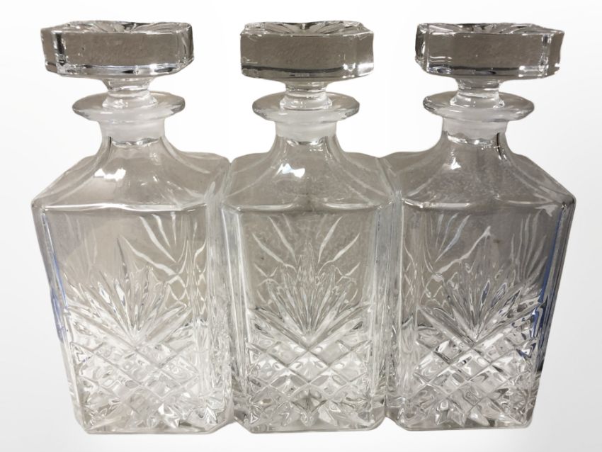 A set of three decanters, height 23 cm.