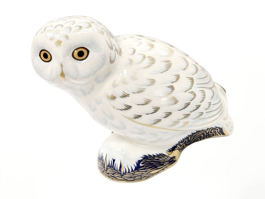 A Royal Crown Derby Snowy Owl paperweight, with gold stopper, boxed