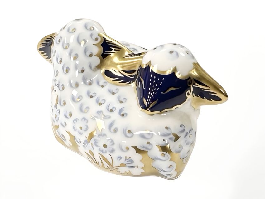 A Royal Crown Derby Twin Lambs paperweight, with silver stopper, boxed