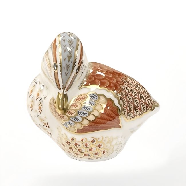 A Royal Crown Derby Teal Duckling paperweight, with gold stopper
