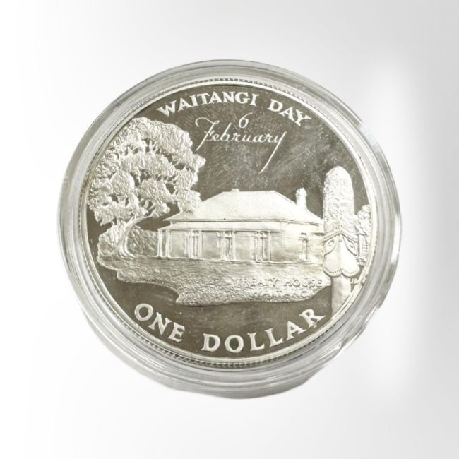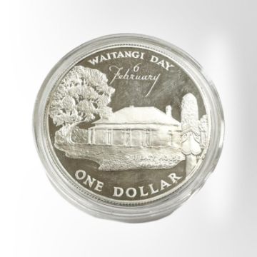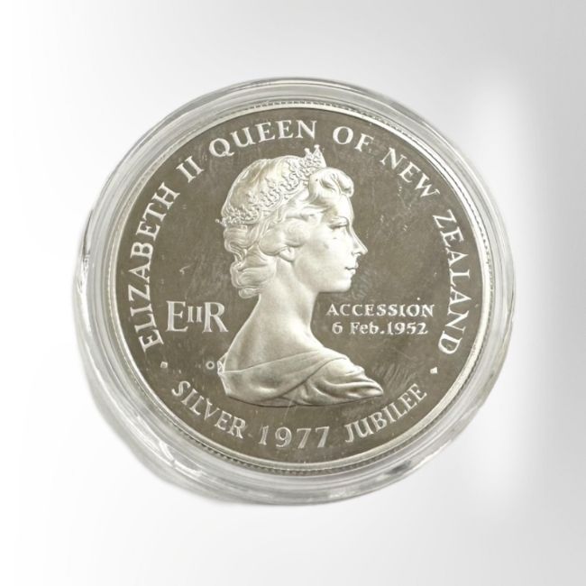 A Queen Elizabeth II 1977 Jubilee Waitangi Day 0.925 silver one dollar, 27.9g.