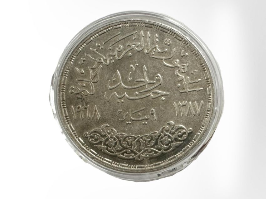 An Egyptian Power Station of Aswan Dam 1967 1 pound 0.720 silver coin, 25g.