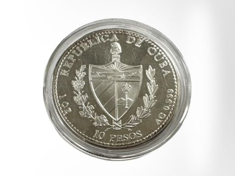 A Republica De Cuba 10 Pesos 0.999 fine silver coin, 1 oz.