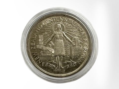 A New Zealand 1940 Centennial 0.500 silver half crown, 14.1g.