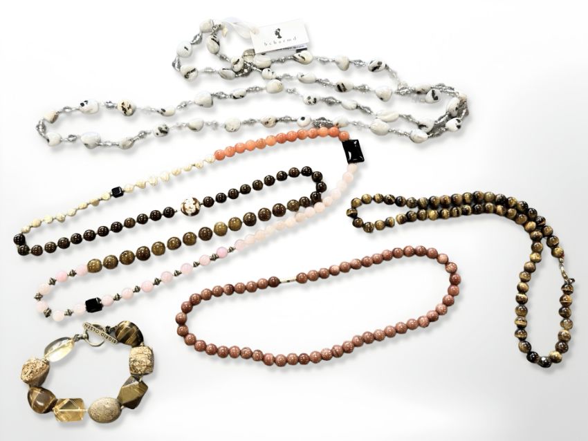 A group of natural and synthetic set jewellery including necklaces and bracelet. (5)