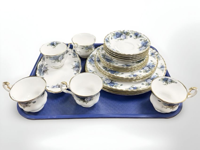 Comprising : 5 tea cups, oblong plate, 5 saucers, 4 small plates, 4 medium plates and 4 dinner plates