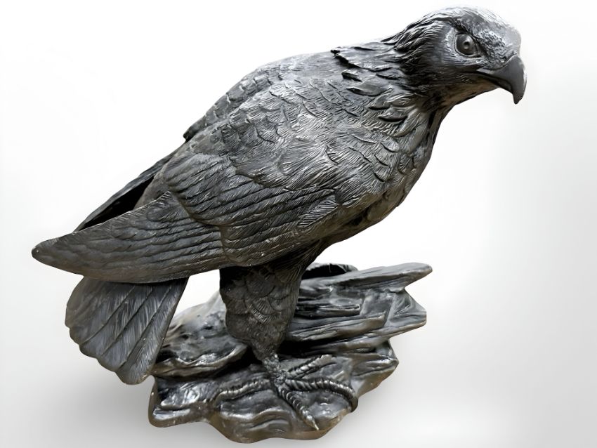 A contemporary bronze-effect figure of an eagle, standing on plinth, height 19.5 cm.