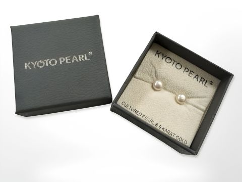 A pair of Kyoto pearl earrings mounted in 9ct yellow gold