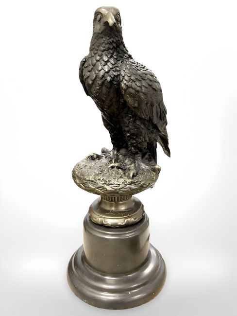 A French bronze figure of an eagle, standing on socle plinth, after A. Thorburn, height 31 cm.
