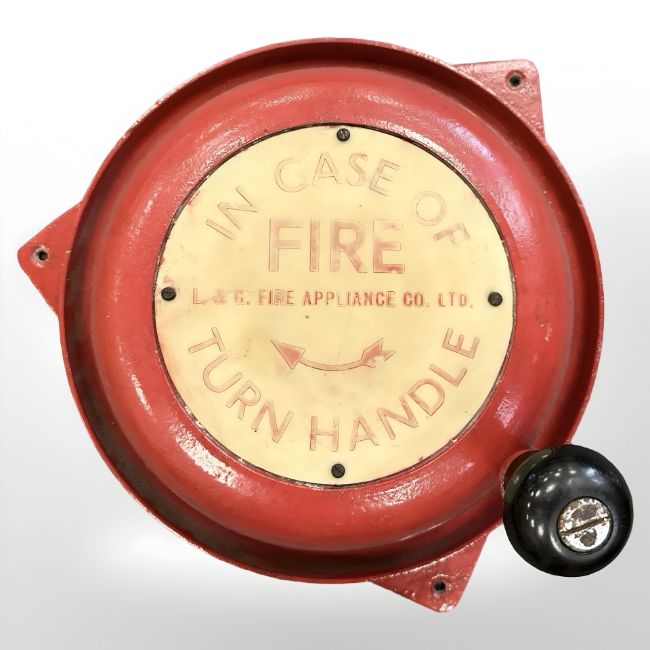An L & G Fire Appliance Co Ltd hand-cranked fire bell, diameter 29cm.