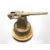 A brass model of a naval gun on circular wooden plinth, height 25cm.