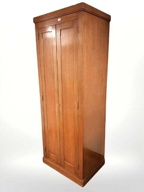 A 1920's ship's teak double door wardrobe closet, 75 cm x 55 cm x 198 cm.