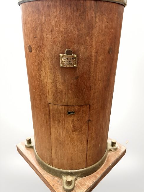 An early 20th century brass-cased ship's binnacle compass, Patt 0183, No.C74, by The Ontario Hughes Owens Company Ltd, Ottawa, Canada, upon a columnar teak binnacle stand, height 80cm.