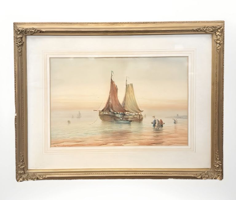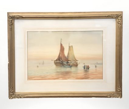 W Baker (fl. early 20th century) Fishing boats at low tide, watercolour, signed and dated 1913, 36 cm x 53 cm.