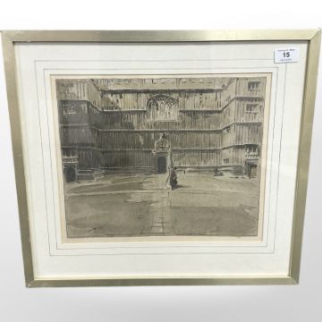 Sir William Nicholson (British, 1872-1949) : Bodleian Library, University of Oxford, lithograph, signed bottom left in sepia ink, numbered 98, with the blindstamp of The Stafford Gallery, 34 Old Bond Street, 28 cm x 33 cm, framed.