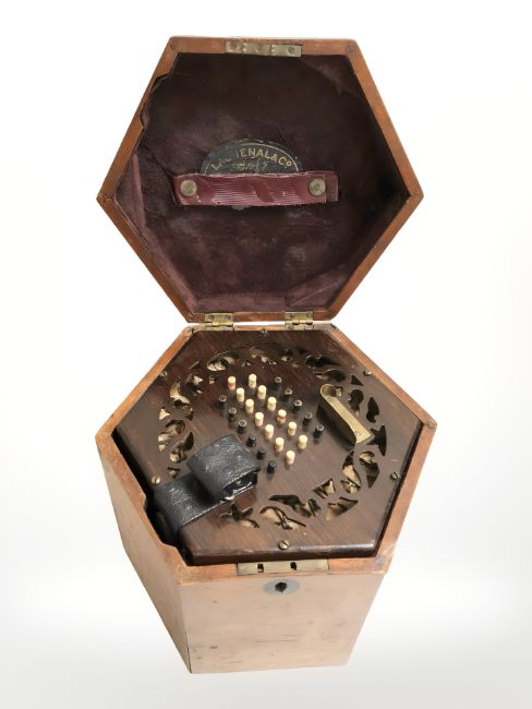 A twenty four button concertina in Lachenal & Co box.