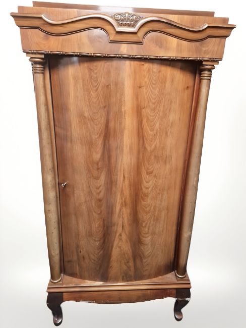 An early 20th century continental bow-front single door cabinet with pillar supports, 85 cm x 44 cm x 167 cm
