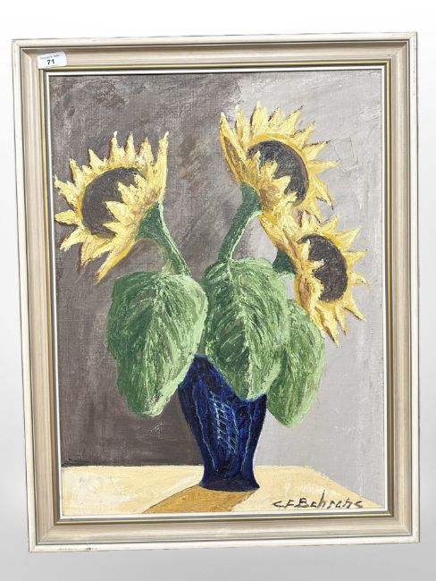 Danish School : Still life with sunflowers, oil on canvas, 45 cm x 60 cm.