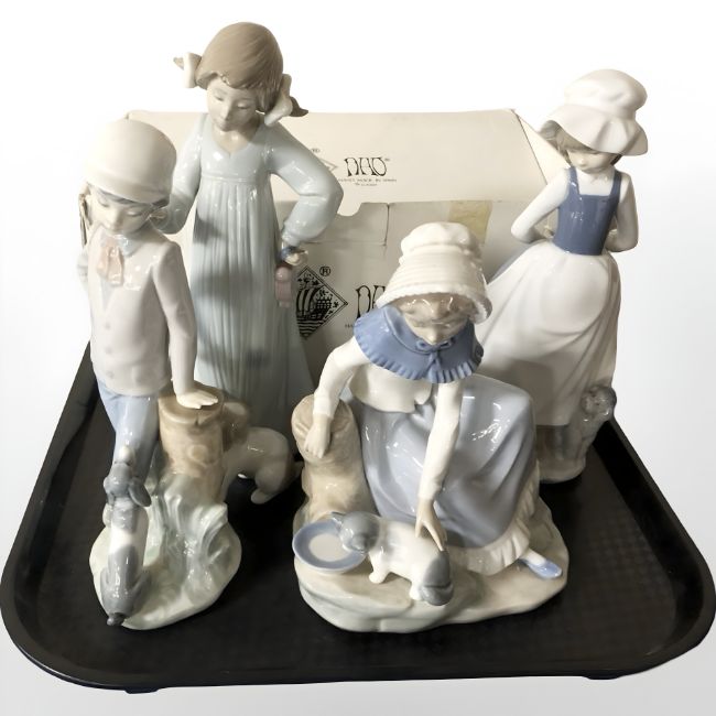 Four various Nao figures of girls, one boxed, tallest 25 cm.