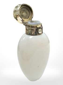 A Victorian opaline glass silver gilt-mounted scent bottle, William Barker, London 1856, height 8.5cm