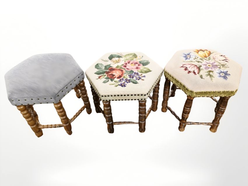 Three hexagonal footstools