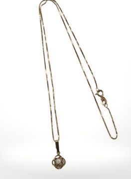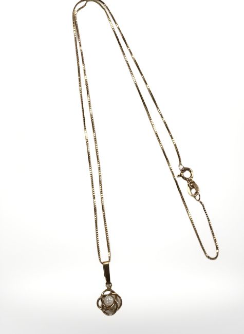 A 9ct yellow gold pendant set with a pearl on 9ct gold chain.