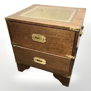 Two mahogany brass mounted campaign style lamp tables, largest 45 cm