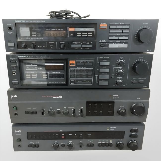 A MAD monitor stereo series amplifier MD300, stereo receiver 7100 and an Aonkio quartz synthesizer tuner amplifier TX/26 and stereo AM tuner amplifier TN/15 (continental wiring)