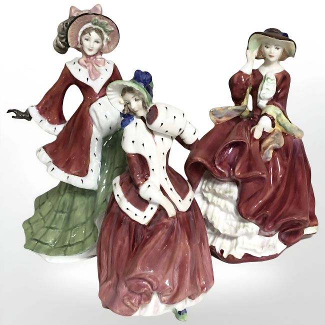 Three Royal Doulton figures 'Top O' The Hill' HN1834, 'Winter Time' HN3622 and 'Christmas Morn' HN1992.