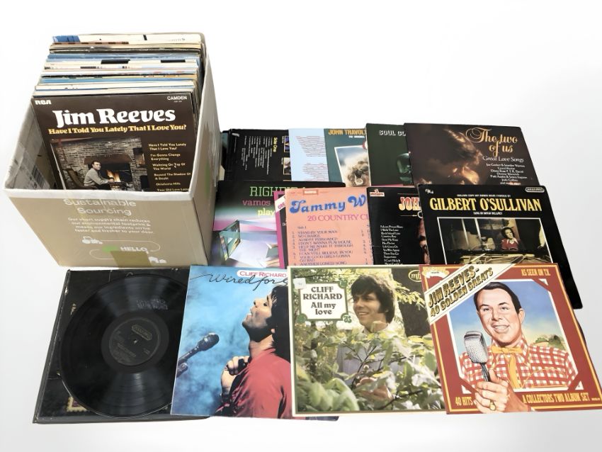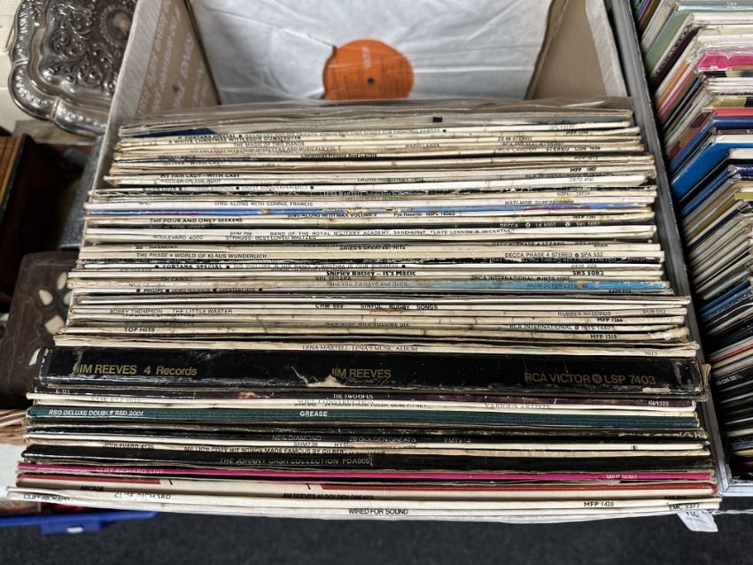 Vinyl LP records including Neil Diamond, Johnny Cash, Shirley Bassey, Cliff Richard, greatest hits compilations, etc. (1 box)