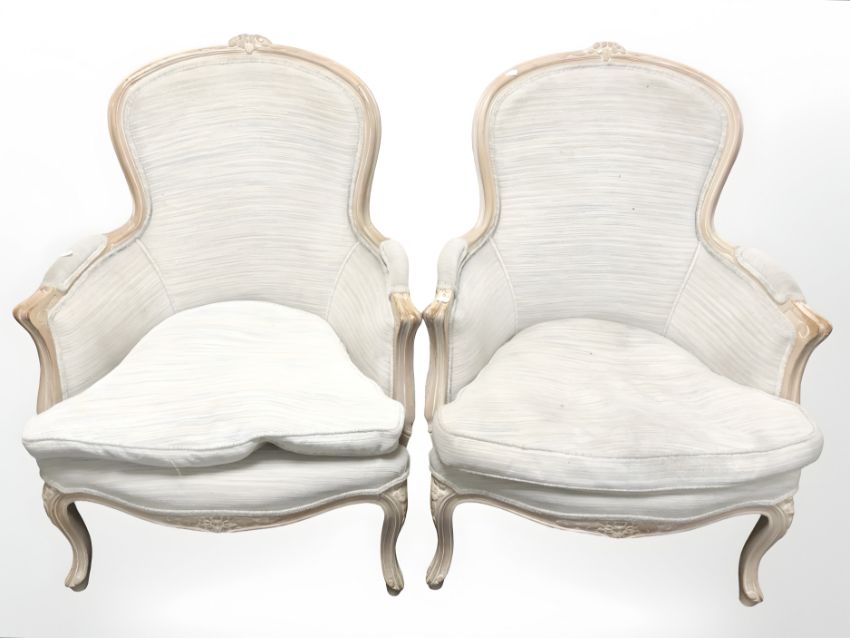A pair of reproduction French style carved armchairs, width 70 cm