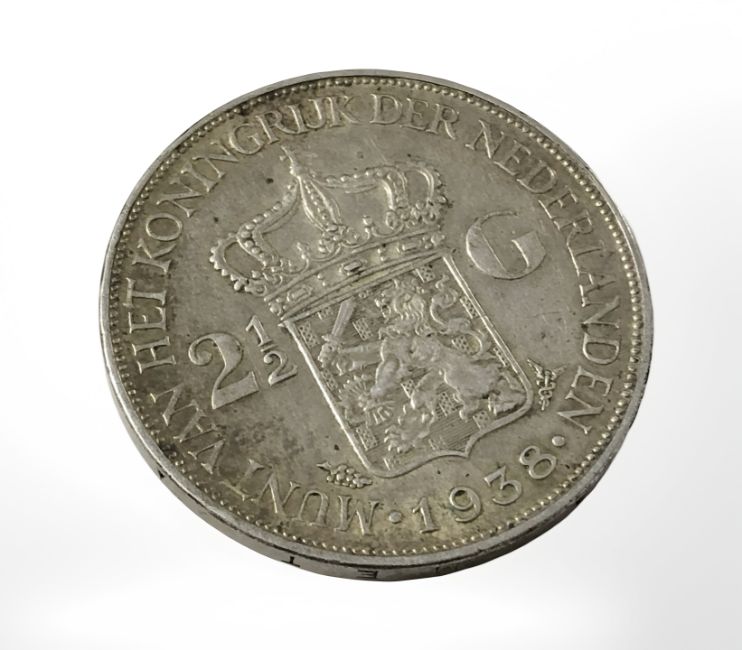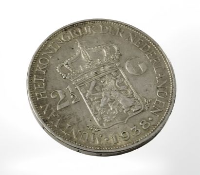 A Dutch 2 1/2 guilder coin, 1938.