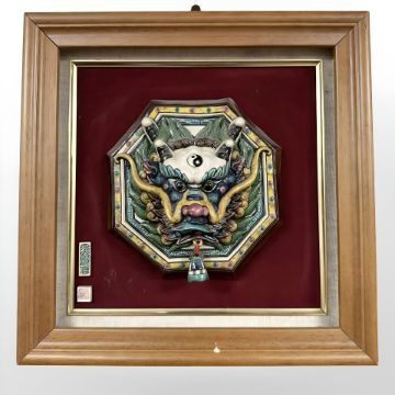 A Chinese relief panel depicting a dragon, 36 cm x 36 cm.