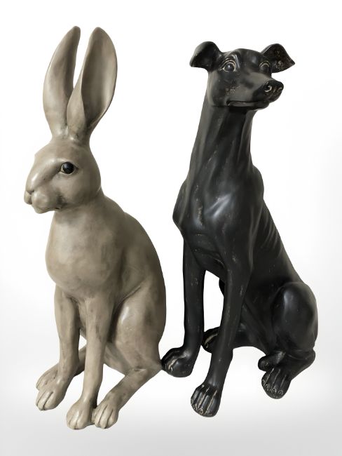 A modern composition figure of a whippet and a further of a hare, tallest 60 cm