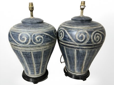 A pair of large contemporary pottery lamp bases, height 53 cm