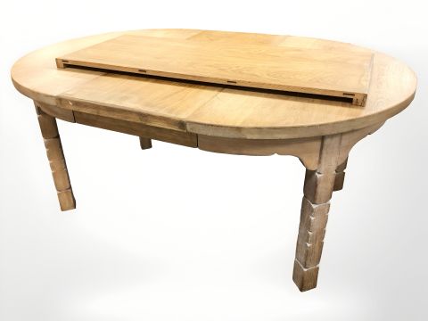 A Danish blond oak extending dining table with two leaves, total length 220 cm x 120 cm x 75 cm