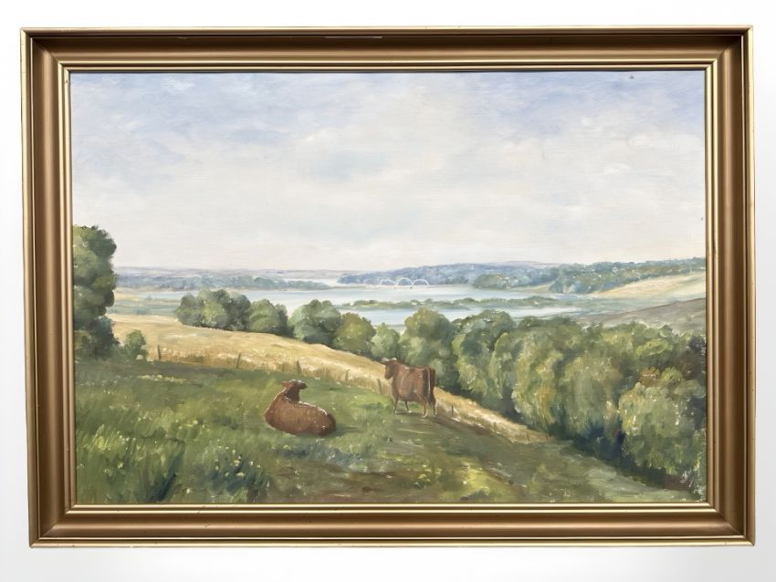 Soren Jansen : Cattle on a hillside, oil on canvas, 95 cm x 65 cm.
