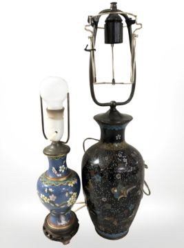 Two Chinese cloissone lamp bases, tallest 54 cm including fitting. (continental plugs)