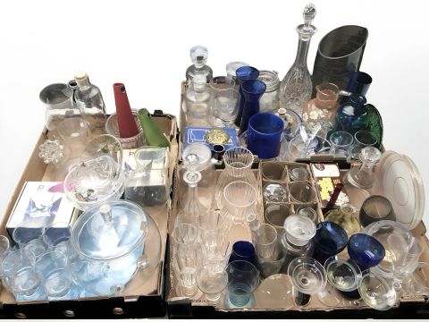 Assorted 20th century glasswares including vases, decanters, drinking glasses, etc. (3 boxes)