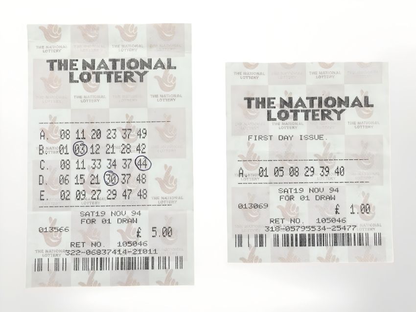 Two National Lottery tickets, draw number 1 issued for Saturday 19th November 1994.