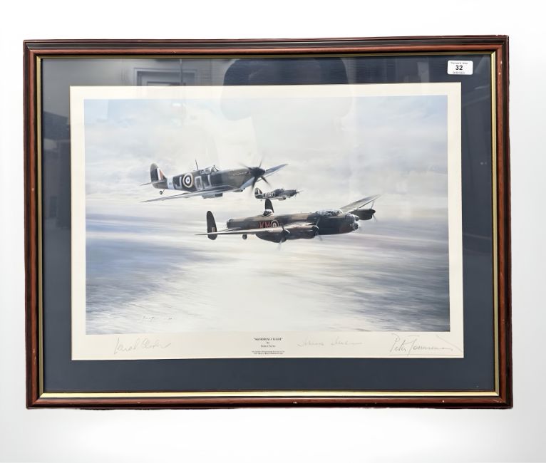 After Robert Taylor : Memorial Flight, Colour print signed by Johnnie Johnson and others, 60 cm x 42 cm
