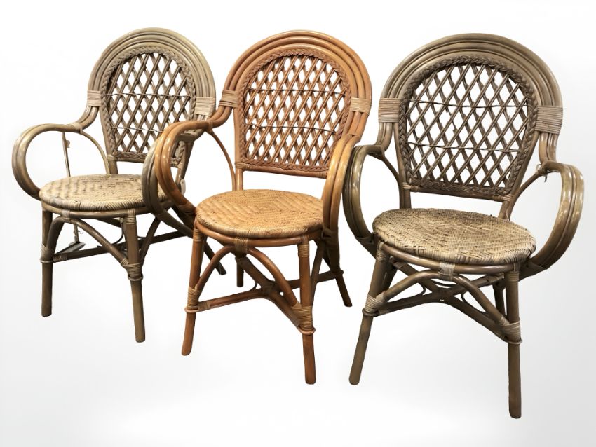 A par of wicker armchairs and one other
