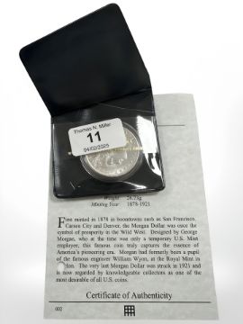 A Westminster Collection issue : United States of America Morgan Dollar 1900, .900 silver, 26.73g, with certificate.